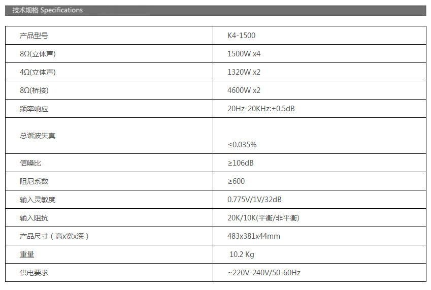 特色:采用先進的ClassD功放模塊和*的SMPS電源模塊;具有極高的功率密度,僅在1U高度11\\\"深度的標準機箱空間內就能提供前所未有的強大功率。